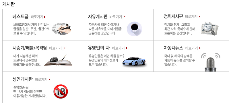 중고차 판매보다 자동차 커뮤니티 활동이 더욱 활발합니다. 또한 튜닝카처럼 특이한 차량을 쉽게 구할 수 있는데 자동차 커뮤니티가 활발하다보니 매니아들이 찾는 차량들의 거래가 많습니다.