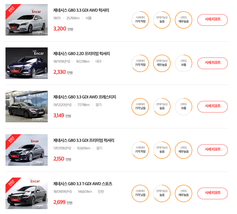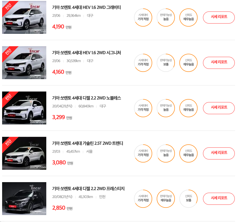 가장 인기 많은 차량을 추천드렸고 그 외에 시세를 원하시면 아래 링크 접속 시 엔카 중고차 시세 검색으로 바로 연결 가능합니다.